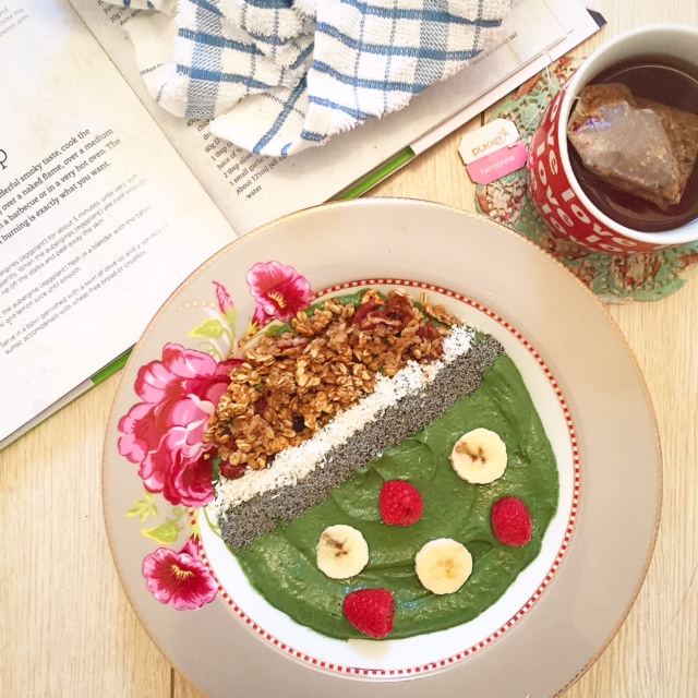 ‘How do you get protein if you’re a vegetarian?’ That is the question I am asked on a daily basis. And I love giving the answer! I get so much plant-based protein, protein that gets absorbed instantly and is bioavailable, that I’m sure I actually get more protein that my meat-loving husband! Plant-based wonders like chia seeds, hemp seeds, quinoa, nut butters, chickpeas and the wonderful spirulina contain all the protein I need. Spirulina is around 50-70% protein, a complete protein. To explain it in simpler terms, 100g of spirulina contains 57g protein, where100g of chicken, in comparison, contains only 16g protein! So I try to get it in my diet a couple of times a week and the best way to do that is in a smoothie or a juice. This is a great pre or post workout smoothie!
