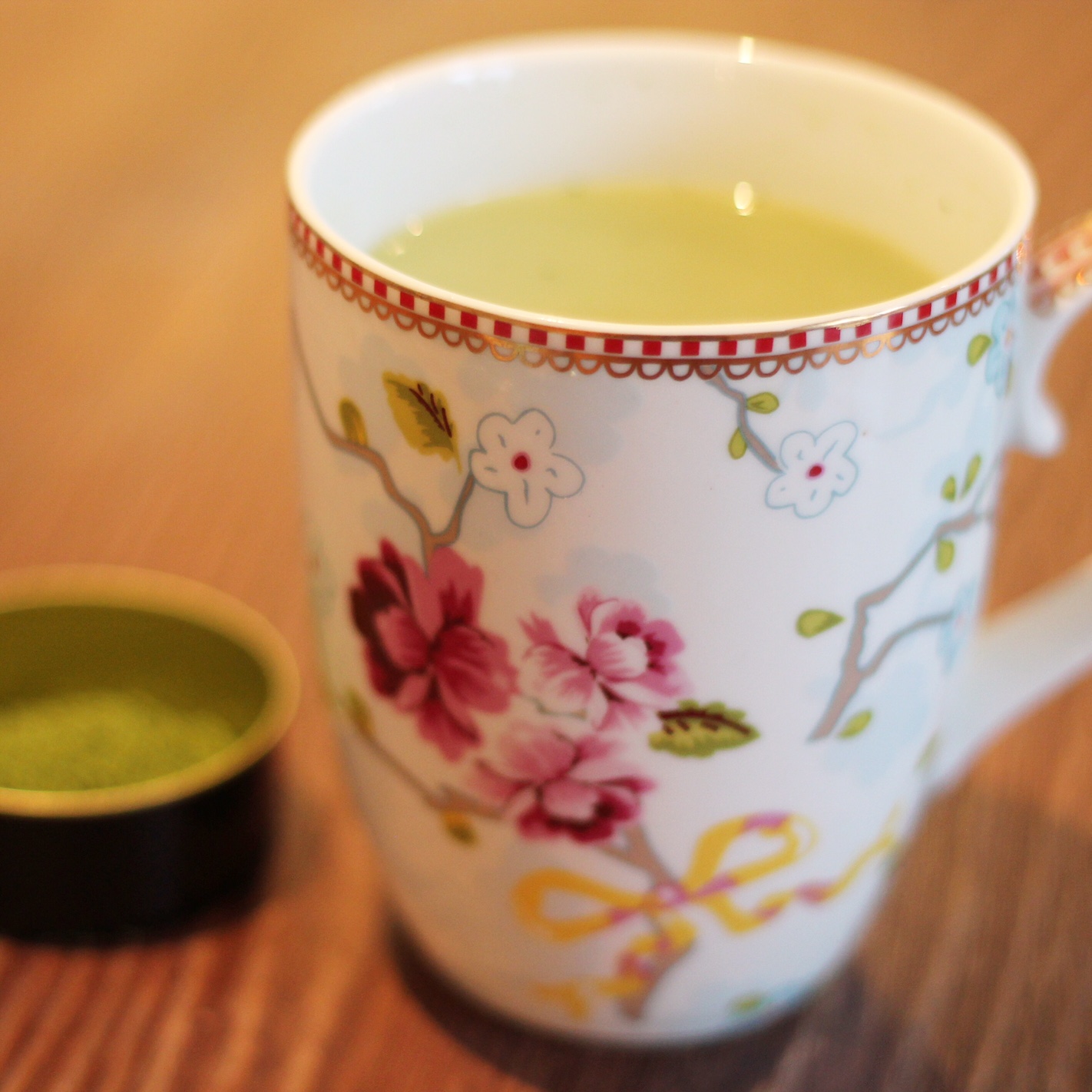 I wanted to start a gentle detoxification of the fertility drugs I had to take, so I decided to start drinking matcha tea. I bought the ceremonial grade (this is the highest grade and should be the one you use if it’s for drinking) and started having one cup a day (can’t have more as I’m breastfeeding). One afternoon I fancied something sweet. I used to love a chai tea latte at Starbucks but I try not to drink any of that anymore, so I wondered if I could make matcha into a latte. Turns out you can, and it’s delicious! You can add the peppermint like I did or have it without.