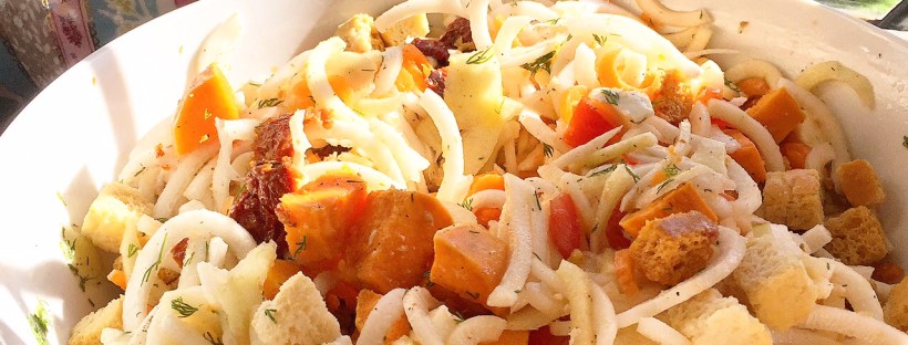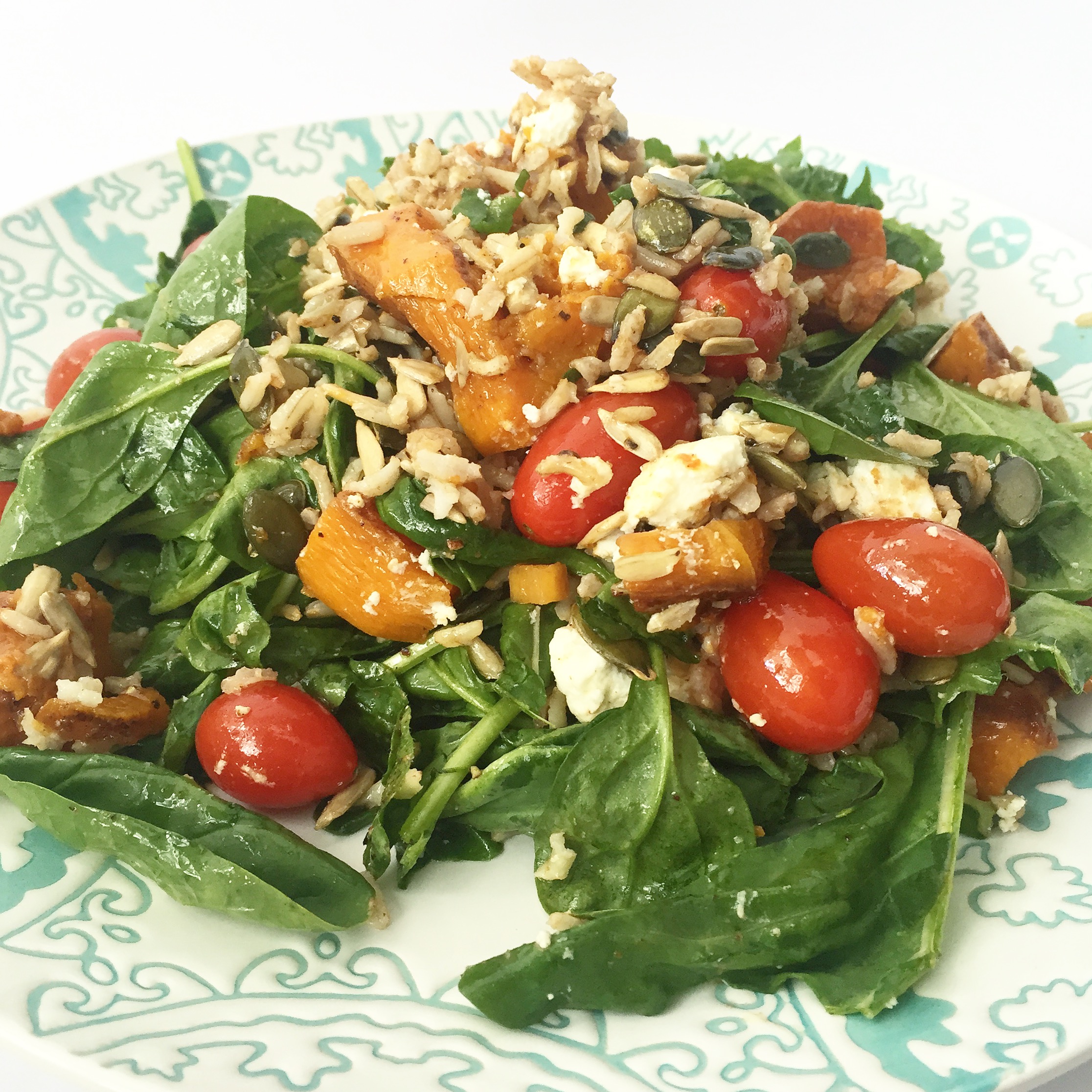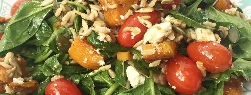 Add to that some butternut squash which is also an anti-inflammatory (and because the contrast of colours look so great!) and some spring onion and pumpkin seeds for calcium, and we have a winning dish.
