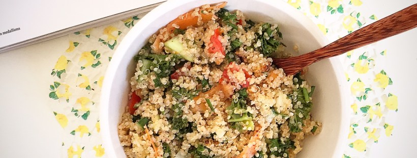 I had this salad with a fillet of hot-smoked salmon. A perfect hot summer’s day lunch.