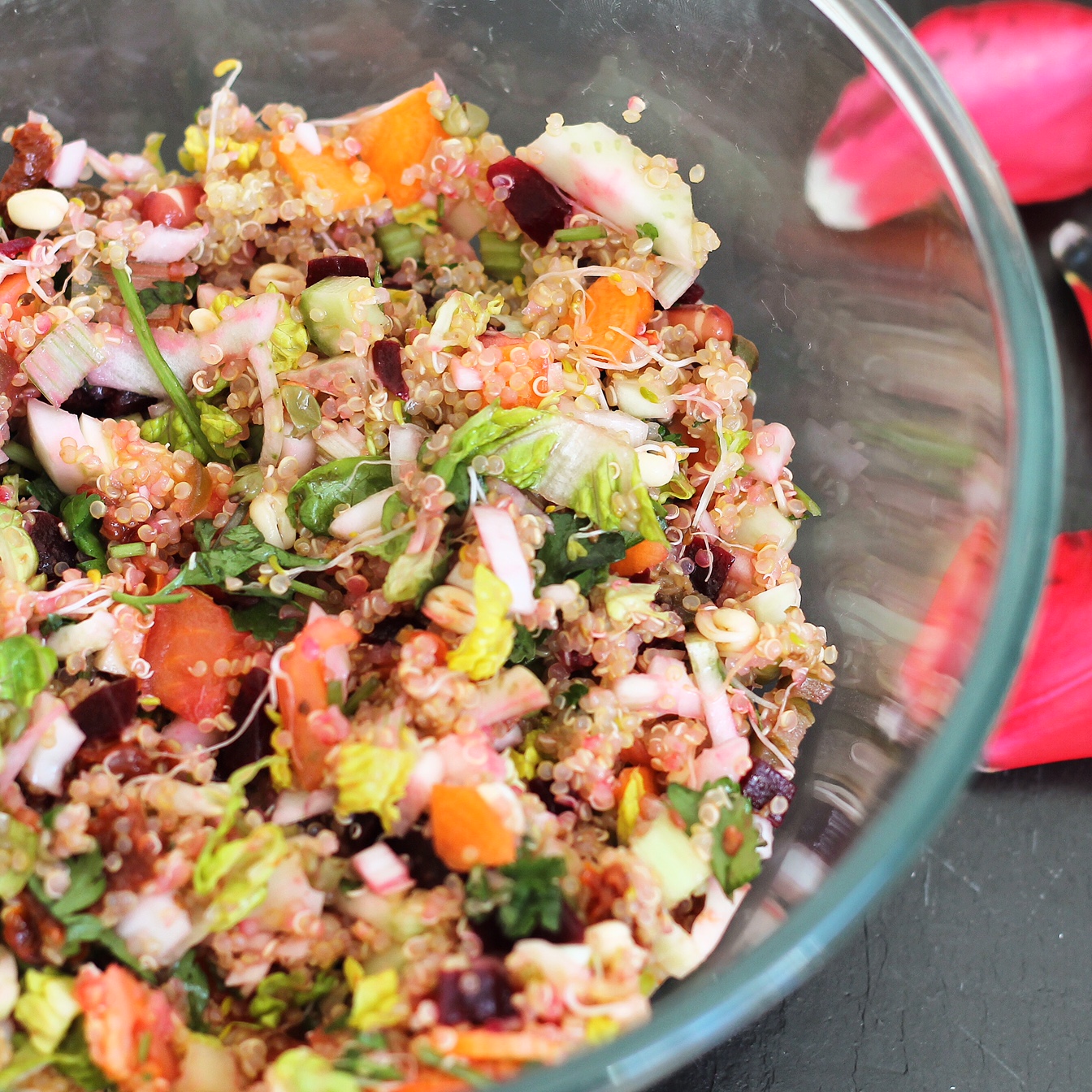 Combine all the ingredients. Dress with a drizzle of olive oil and pomegranate concentrate. Season to taste with himalayan salt and freshly ground black pepper.
