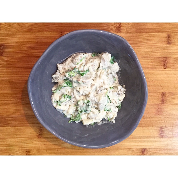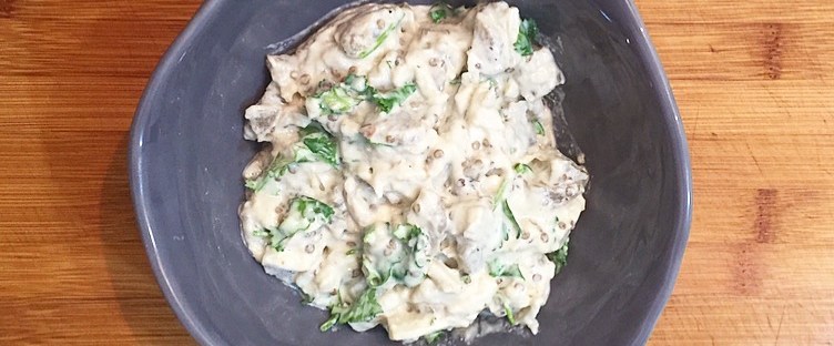 For the base, steam the cauliflower and zucchini until tender. Blend with the eggs, salt and nutritional yeast until completely smooth. Then add the psyllium husks and blend to combine. The mixture will be quite thick and gloopy.
