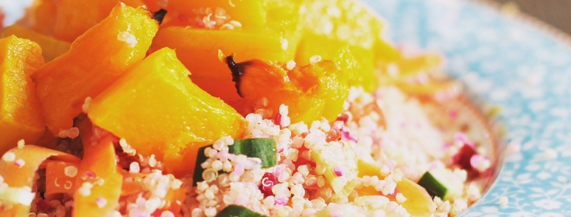 Add to that some butternut squash which is also an anti-inflammatory (and because the contrast of colours look so great!) and some spring onion and pumpkin seeds for calcium, and we have a winning dish.