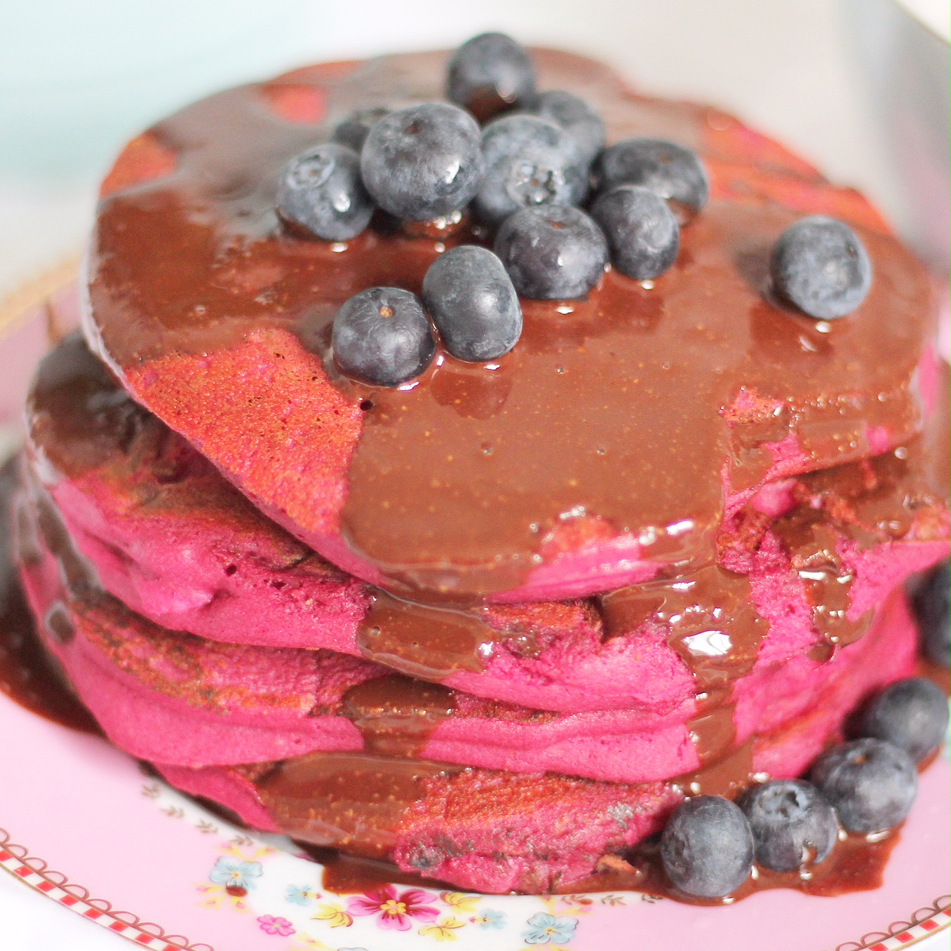 Top with almond butter, homemade chocolate sauce or maple syrup or coconut yogurt and blueberries like we’ve done here.