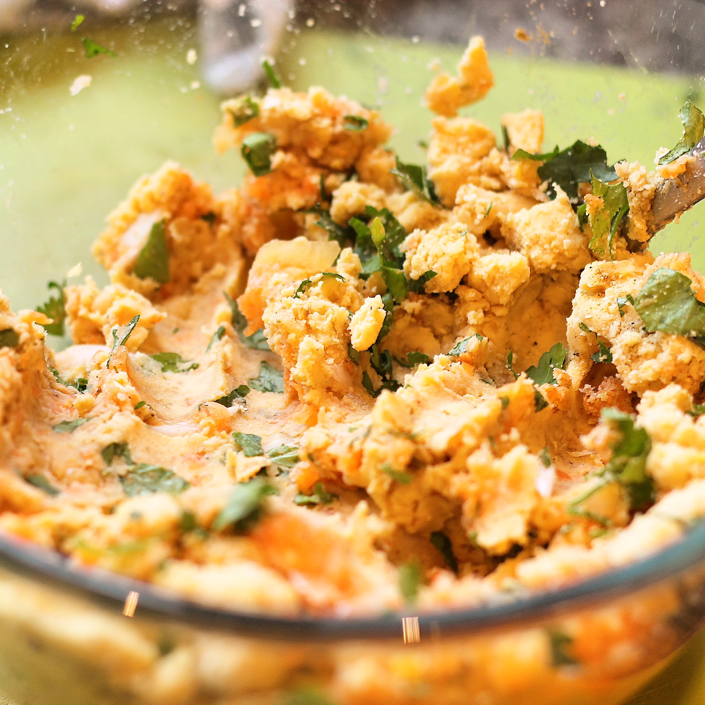 Now add the buttermilk and agave, mix it in with the spoon by folding, then use your hands to really knead it all together. You’ll have to do this fairly quickly as the buttermilk will start reacting with the bicarbonate of soda. You could sprinkle some flour onto the work surface and knead it there instead of the bowl. I find this makes it easier.
